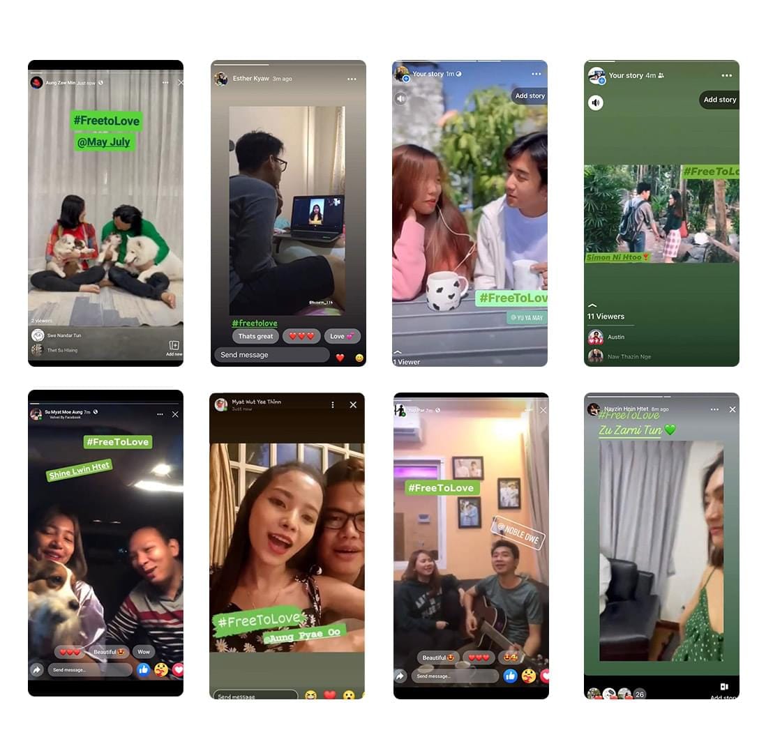 We closed the loop with an activation on Facebook MyDay, inviting 15 real couples to showcase 20-second clips of their daily moments with "FreeToLove" as their background track. The ephemeral, emotional nature of MyDay drove deeper connection, while showcasing diversity in action.
